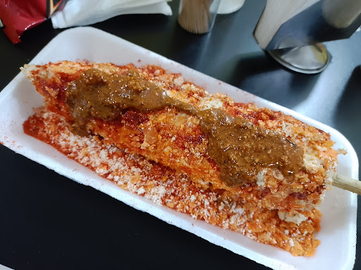 Los alimentos son descritos como deliciosos, con un enfoque en elotes, esquites y salsas. Los clientes destacan la calidad y variedad de los productos, especialmente las salsas, que son consideradas únicas y sabrosas. Hay menciones de postres como flan y fresas con crema. Algunos comentarios sugieren que los esquites y elotes podrían mejorar en sazón, pero en general, la comida es muy bien valorada.